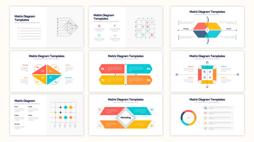 Matrix Diagram PowerPoint Templates | Fully Editable PowerPoint Templates | Matrix Diagram Templates | 20 Slides