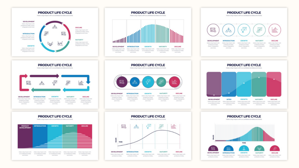 This collection contains fully editable Product Life Cycle infographics.