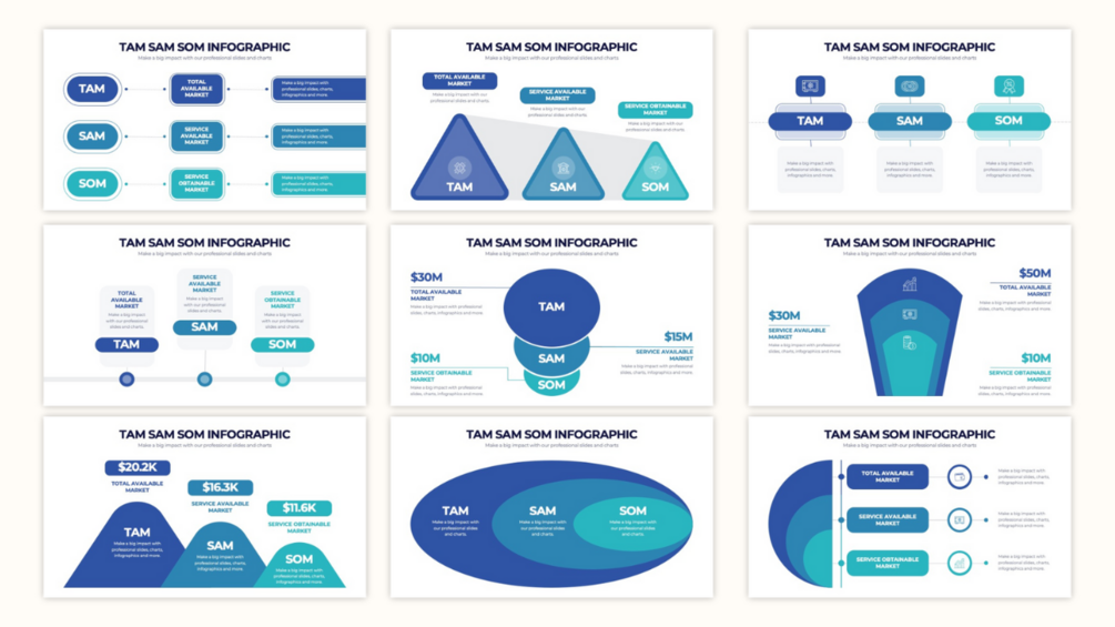 - Free TAM, SAM, SOM Templates: Perfect for startups or businesses conducting initial market research.